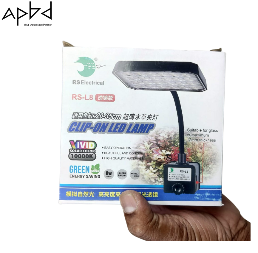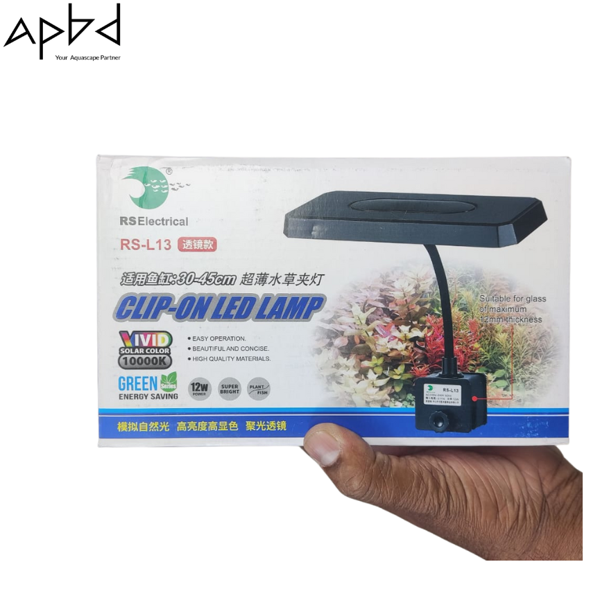 The RS Electrical Clip-On LED Light Series offers high-quality, energy-efficient illumination tailored for nano and small aquariums. Available in various power options, including the popular RS-S8 () and RS-S13 () models, these lights deliver a bright, full-spectrum output essential for vibrant plant growth and enhancing fish colors. Featuring a durable clip-on design that attaches to rimless glass (up to thick) and a flexible, adjustable arm, you can ensure perfect light coverage across your tank. It is a fantastic, low-profile, plug-and-play lighting solution for freshwater, planted, and terrarium setups.